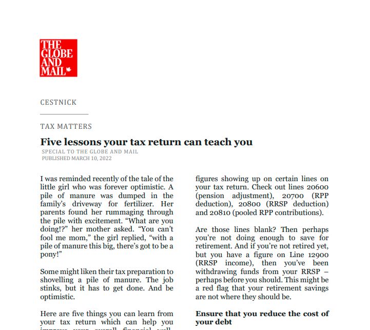 Catch up on our Co-Founder and CEO, Tim Cestnick's weekly column. His status as an expert is reinforced by his role as a tax and personal finance columnist for The Globe and Mail, Canada’s most prominent national newspaper.