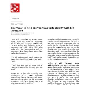 You’ve got to love the creativity and persistence of a good insurance professional. Today, I want to talk about some creative ways to use life insurance – maybe a policy you already own – to help your favourite charities.