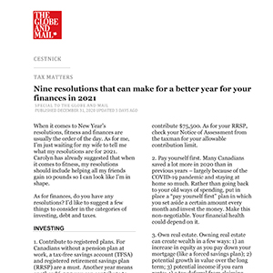 Catch up on our Co-Founder and CEO, Tim Cestnick's weekly column. His status as an expert is reinforced by his role as a tax and personal finance columnist for The Globe and Mail, Canada’s most prominent national newspaper.