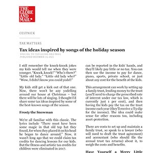 My kids still get a kick out of that one. Now, there won’t be any yodelling around our house at Christmas – but there will be lots of singing. I thought I’d share some tax ideas inspired by some of the best-known songs of the season.