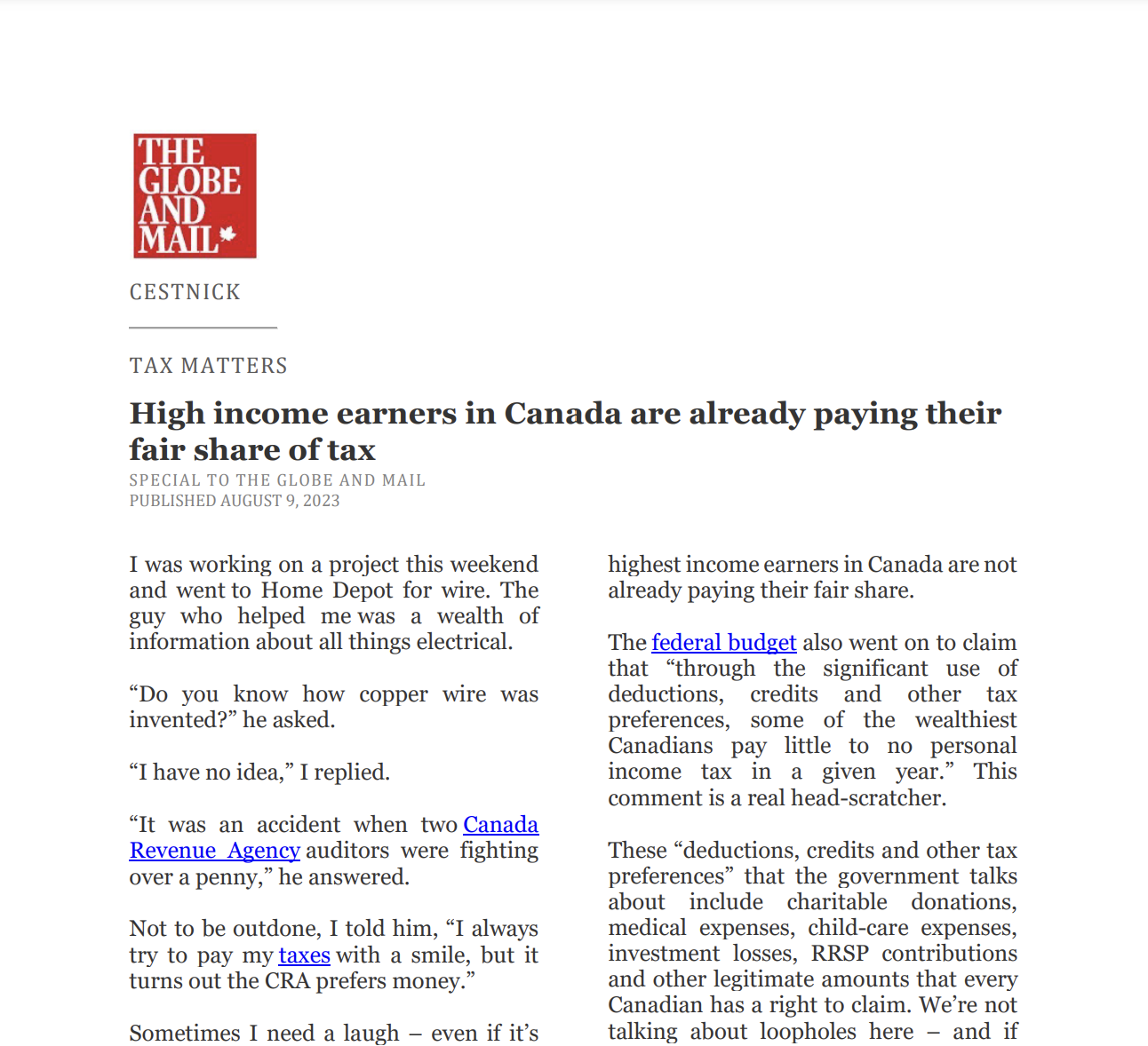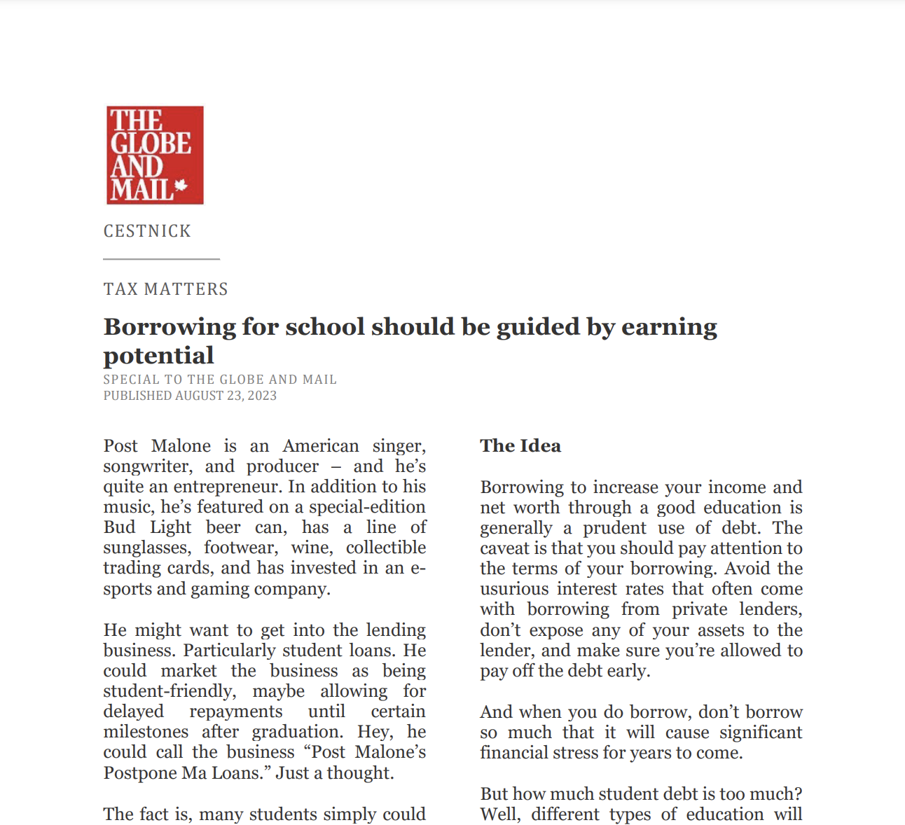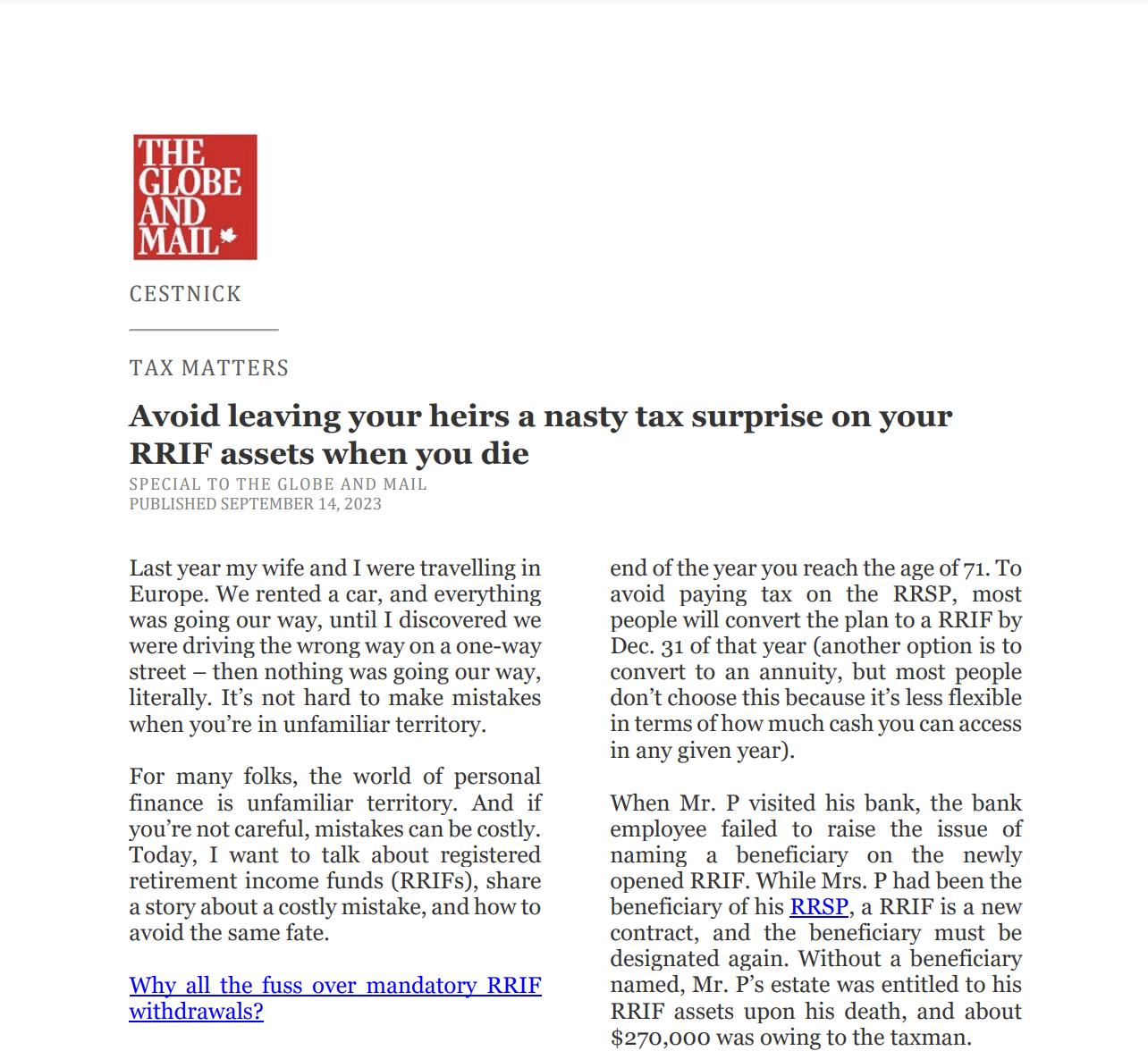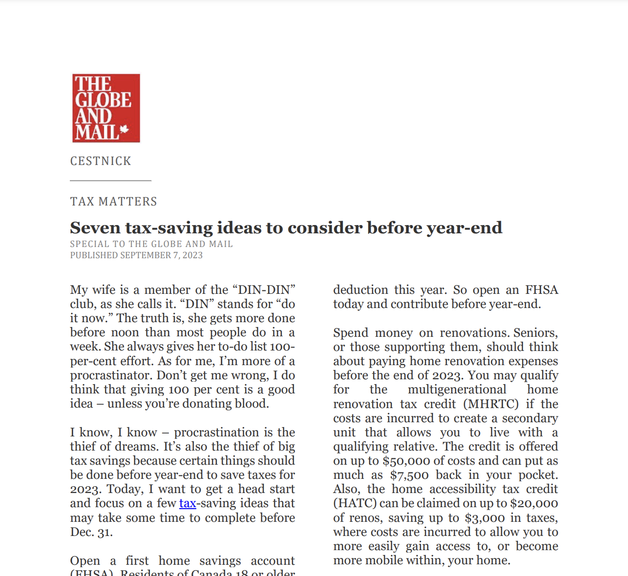 Catch up on our Co-Founder and CEO, Tim Cestnick's weekly column. His status as an expert is reinforced by his role as a tax and personal finance columnist for The Globe and Mail, Canada’s most prominent national newspaper.