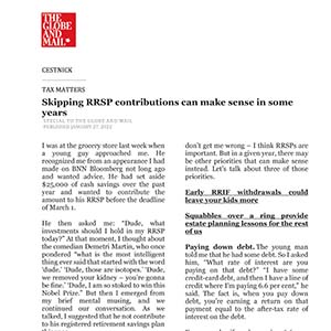 Catch up on our Co-Founder and CEO, Tim Cestnick's weekly column. His status as an expert is reinforced by his role as a tax and personal finance columnist for The Globe and Mail, Canada’s most prominent national newspaper.