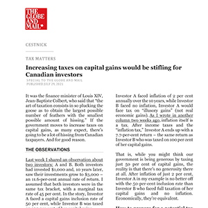 Increasing taxes on capital gains would be stifling for Canadian investors