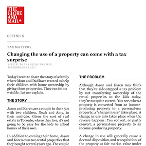 Catch up on our Co-Founder and CEO, Tim Cestnick's weekly column. His status as an expert is reinforced by his role as a tax and personal finance columnist for The Globe and Mail, Canada’s most prominent national newspaper.