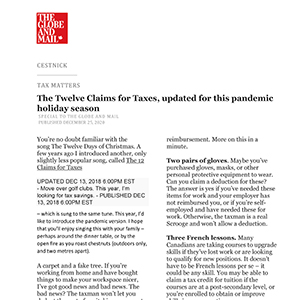 The Twelve Claims for Taxes, updated for this pandemic holiday season