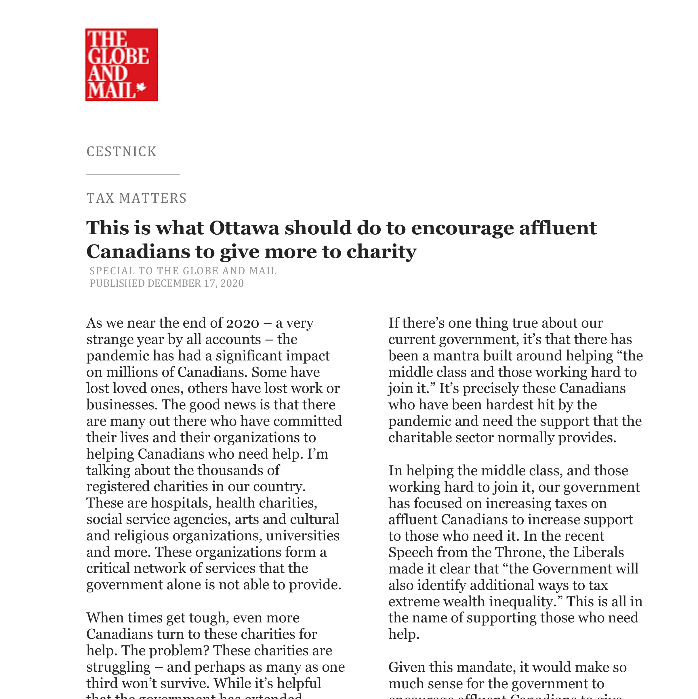 This is what Ottawa should do to encourage affluent Canadians to give more to charity