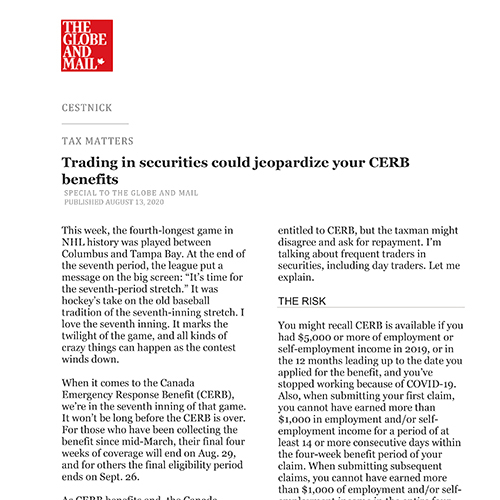 Catch up on our Co-Founder and CEO, Tim Cestnick's weekly column. His status as an expert is reinforced by his role as a tax and personal finance columnist for The Globe and Mail, Canada’s most prominent national newspaper.