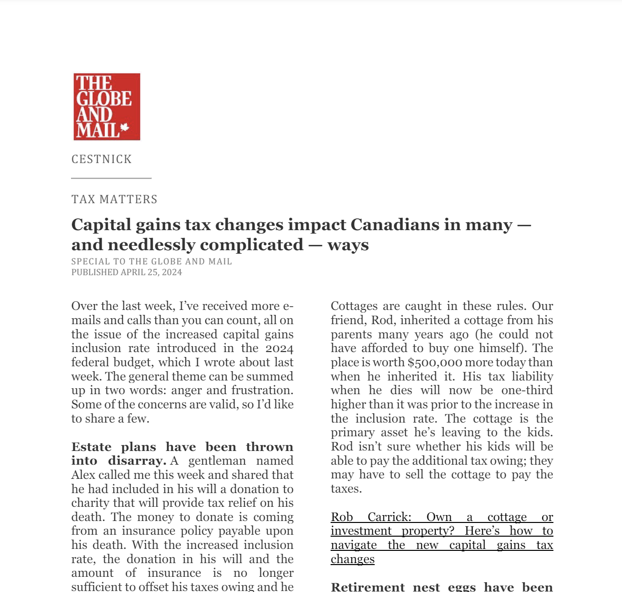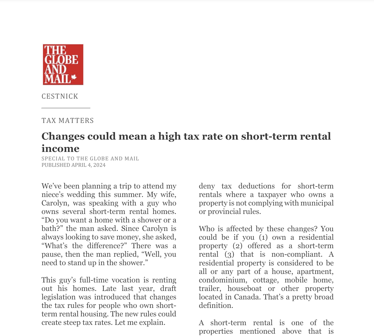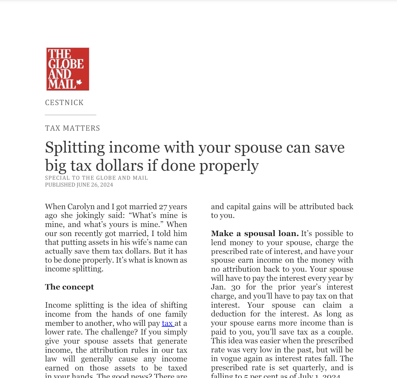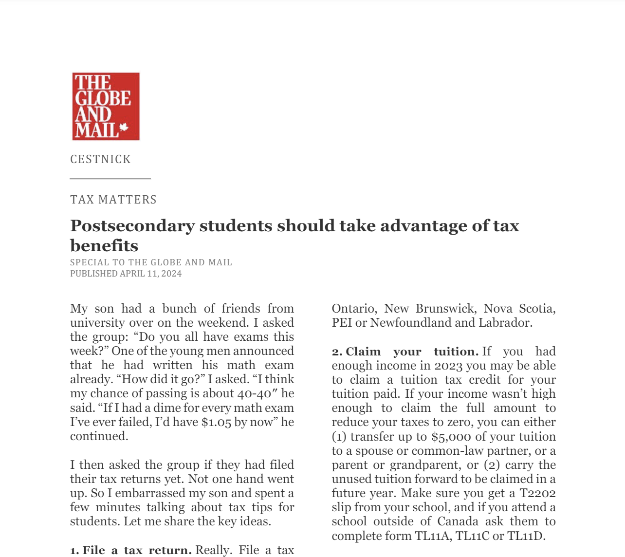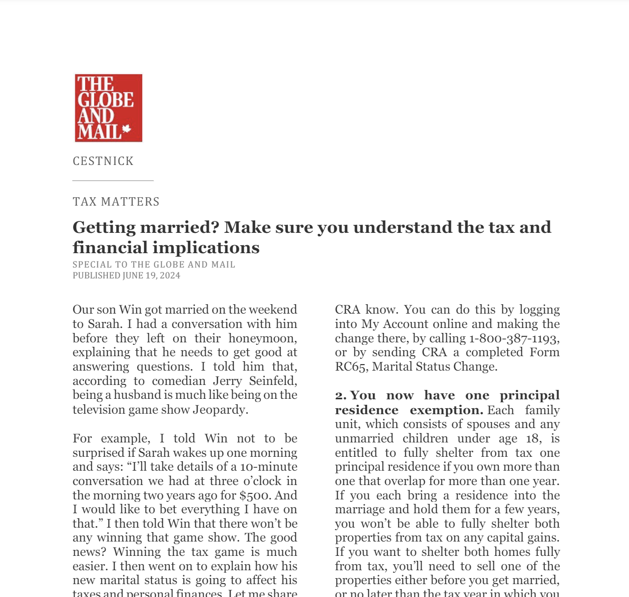 Catch up on our Co-Founder and CEO, Tim Cestnick's weekly column. His status as an expert is reinforced by his role as a tax and personal finance columnist for The Globe and Mail, Canada’s most prominent national newspaper.