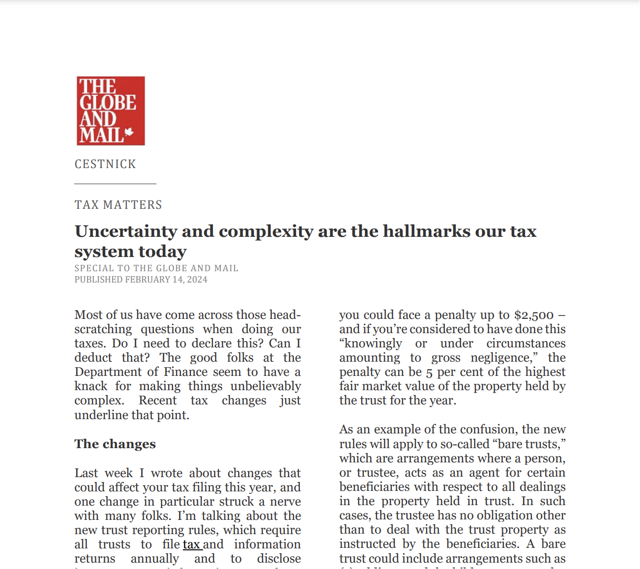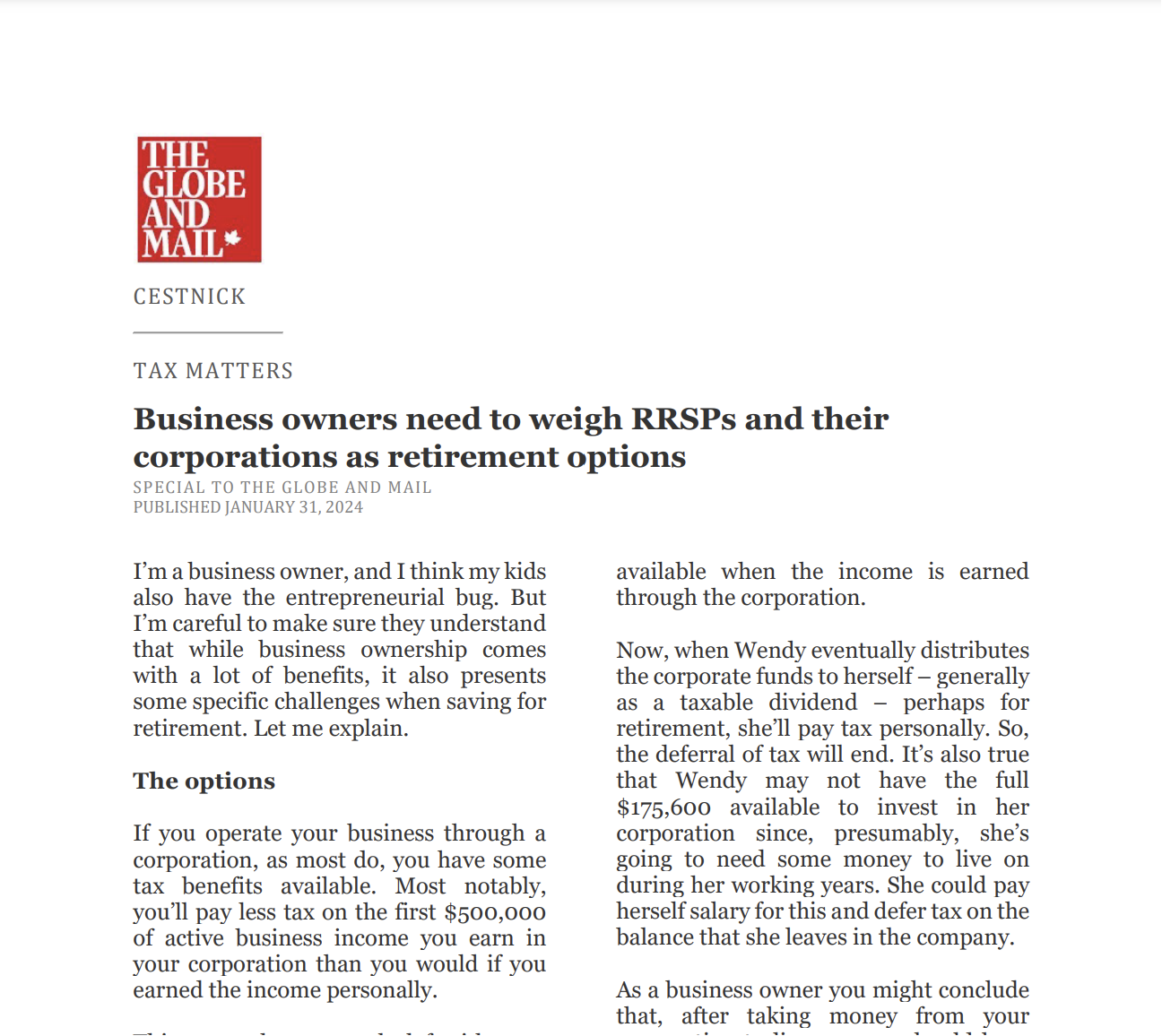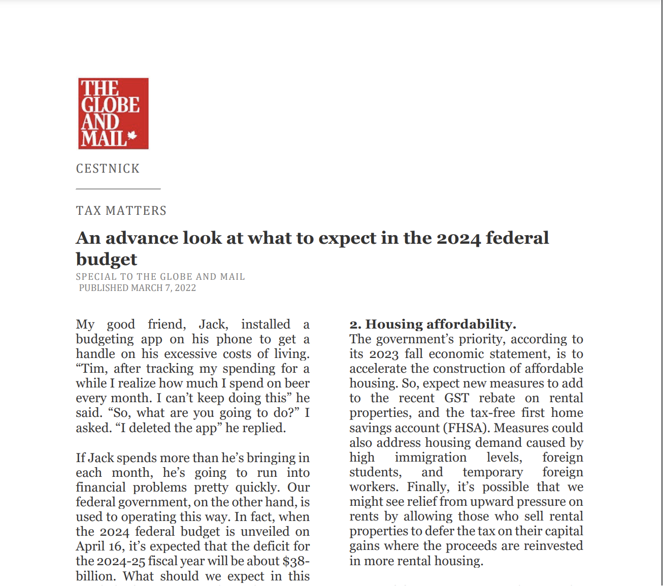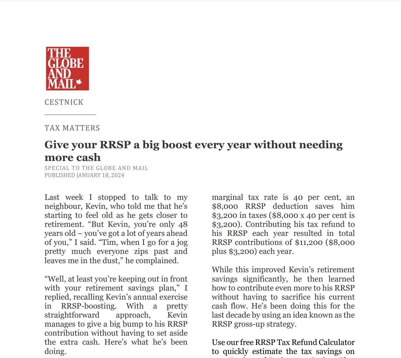 Catch up on our Co-Founder and CEO, Tim Cestnick's weekly column. His status as an expert is reinforced by his role as a tax and personal finance columnist for The Globe and Mail, Canada’s most prominent national newspaper.