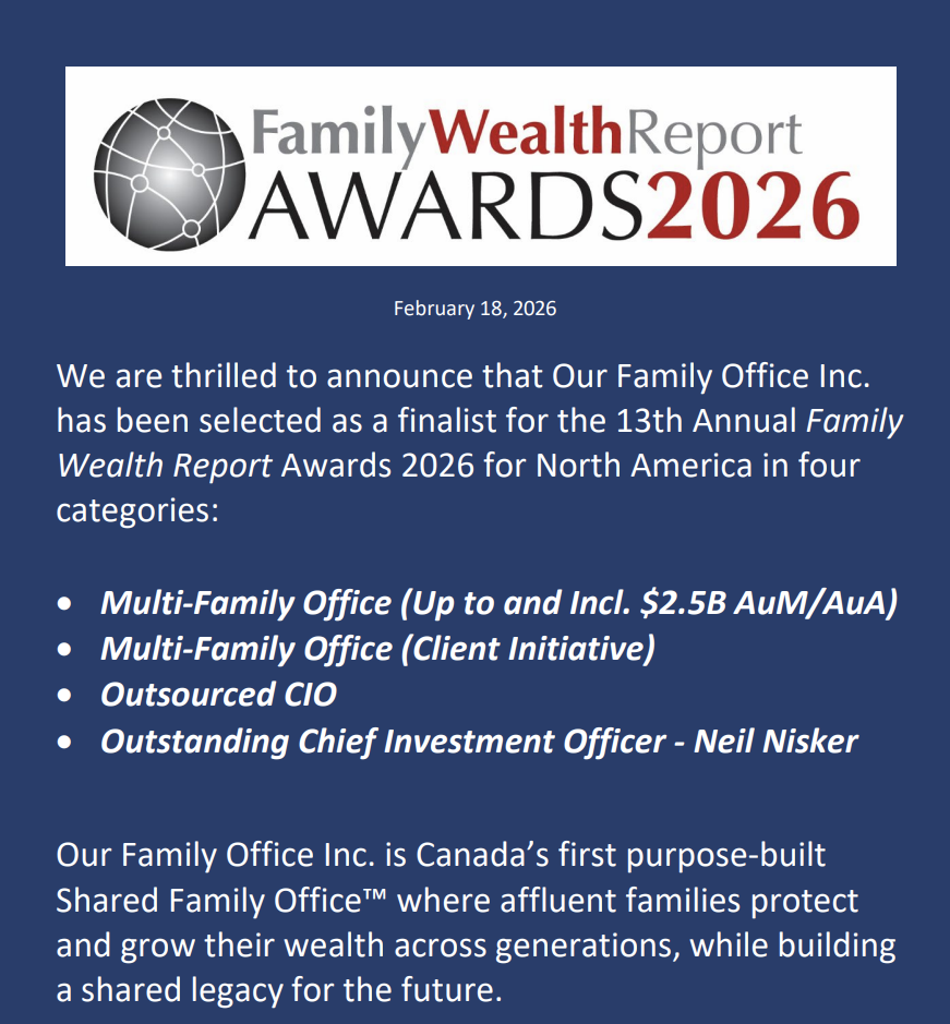 Our Family Office – Finalist in Four Categories FAMILY WEALTH REPORT AWARDS 2026