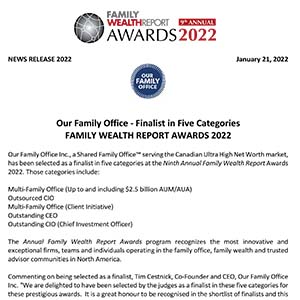 Our Family Office – Finalist in Five Categories for Family Wealth Report Awards 2022