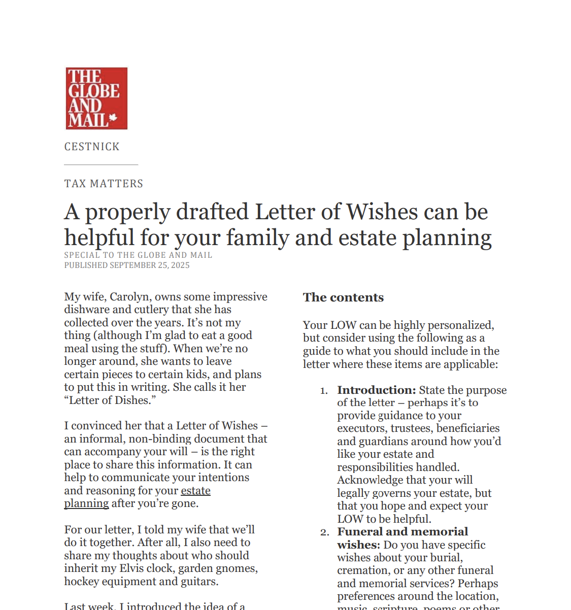 A properly drafted Letter of Wishes can be helpful for your family and estate planning